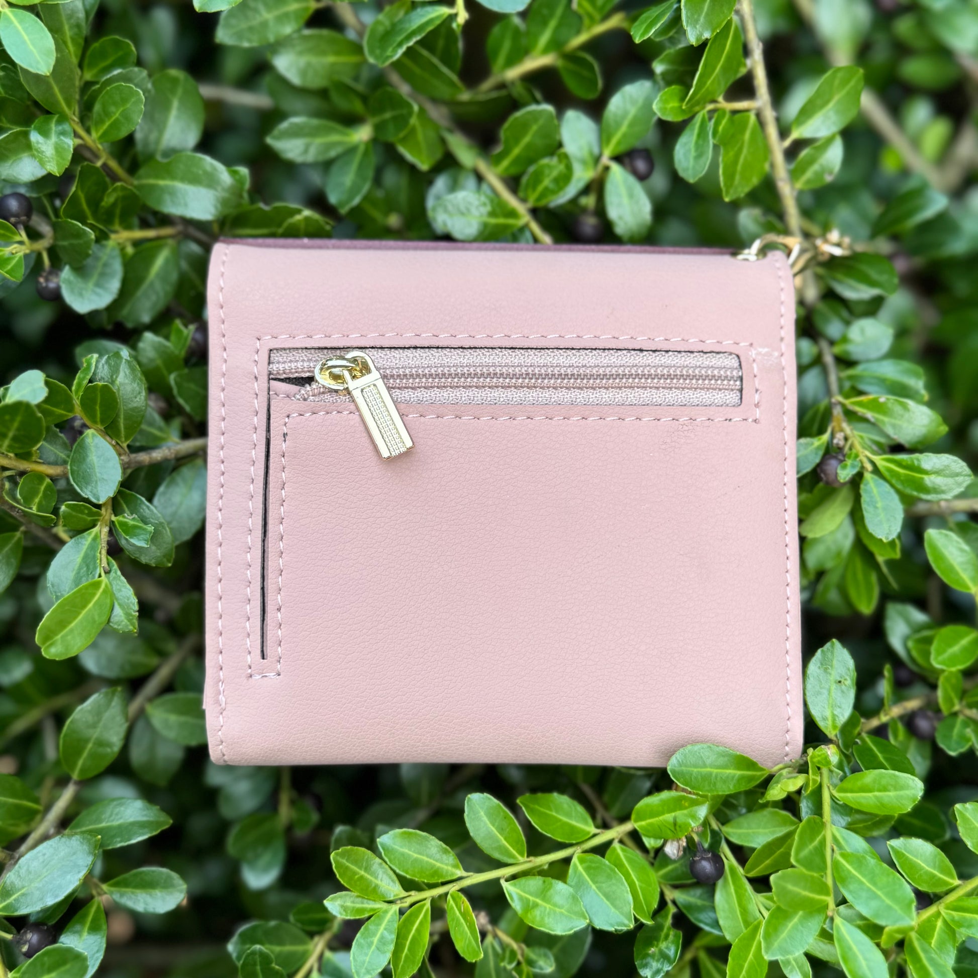Pale Pink Compact Wallet With Floral Gigi