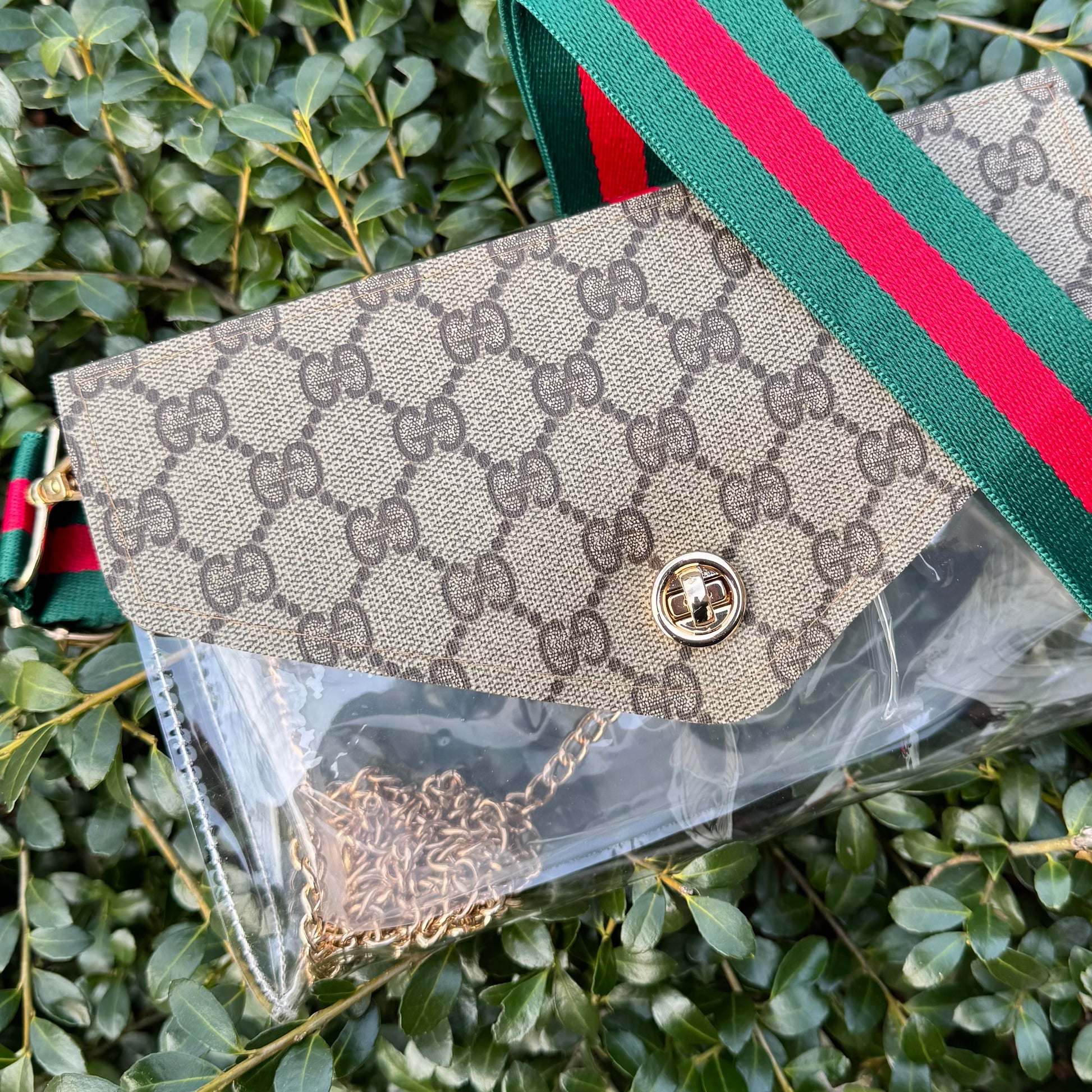 This repurposed designer clear stadium bag is the ultimate blend of style, functionality, and sustainability. Crafted from thick, durable PVC, it’s designed to meet stadium and event regulations, while still turning heads wherever you go.