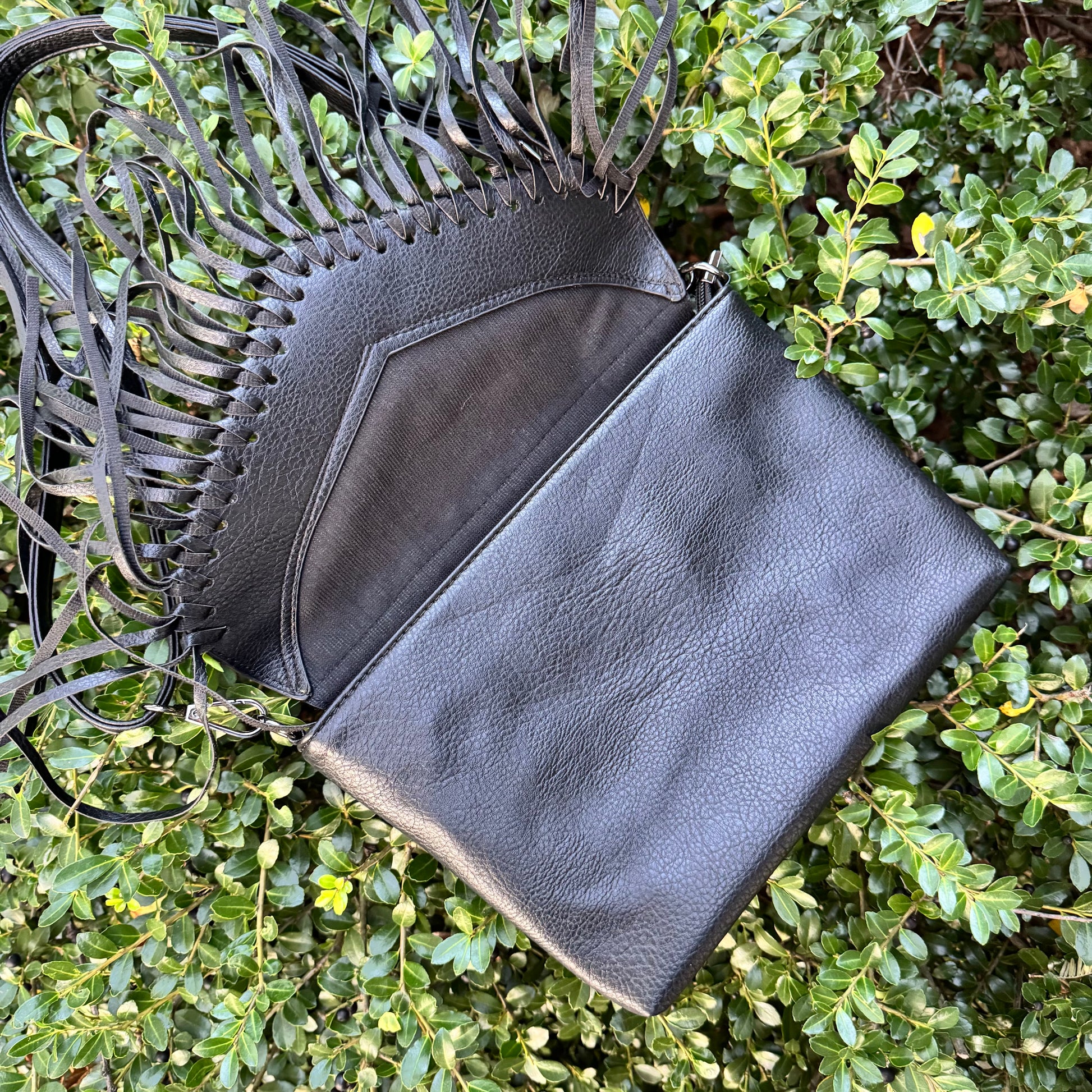 The it bag for fall! Spotted on Danielle Cabral, this repurposed monogram fringe crossbody is the perfect mix of glam and edge.