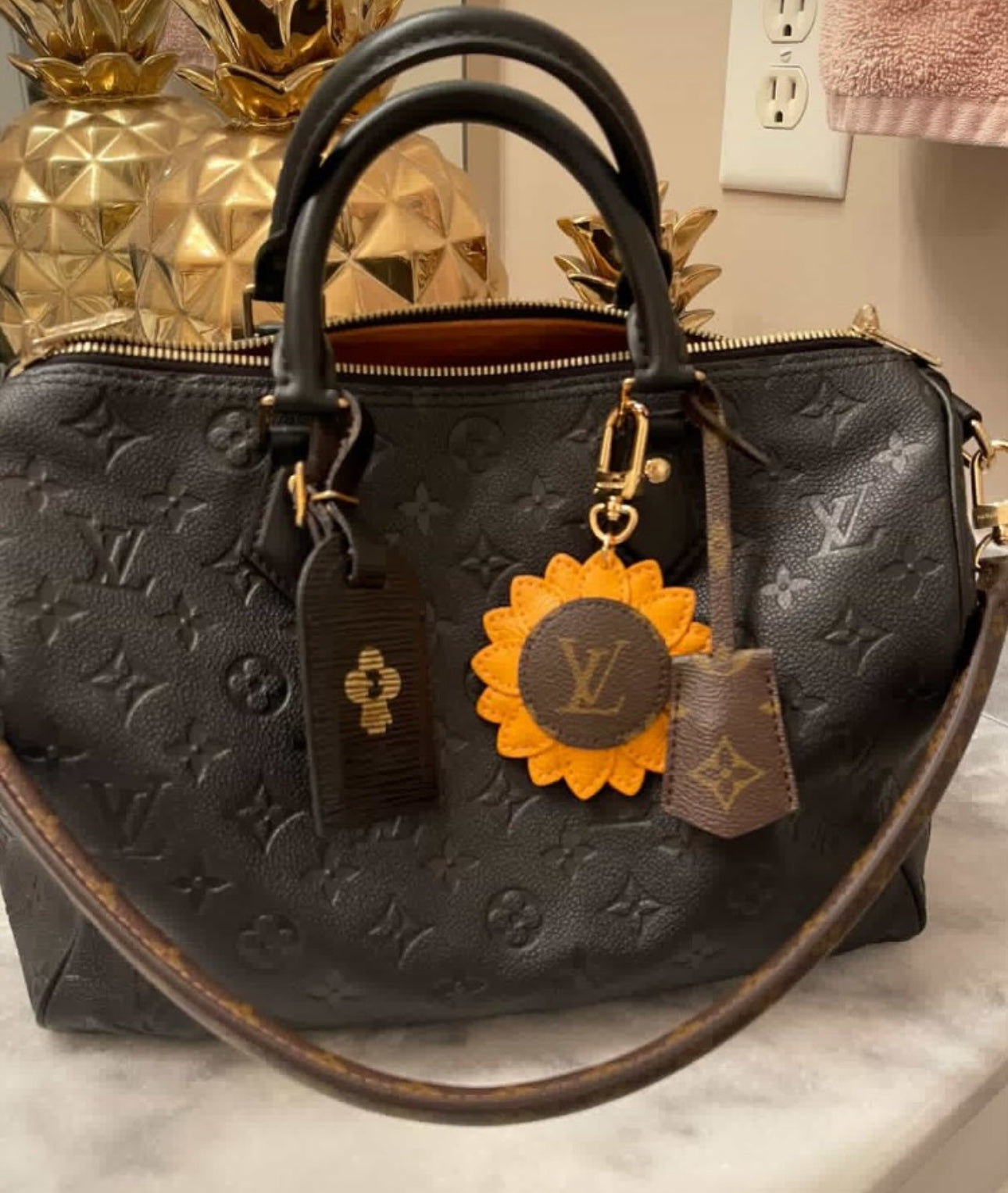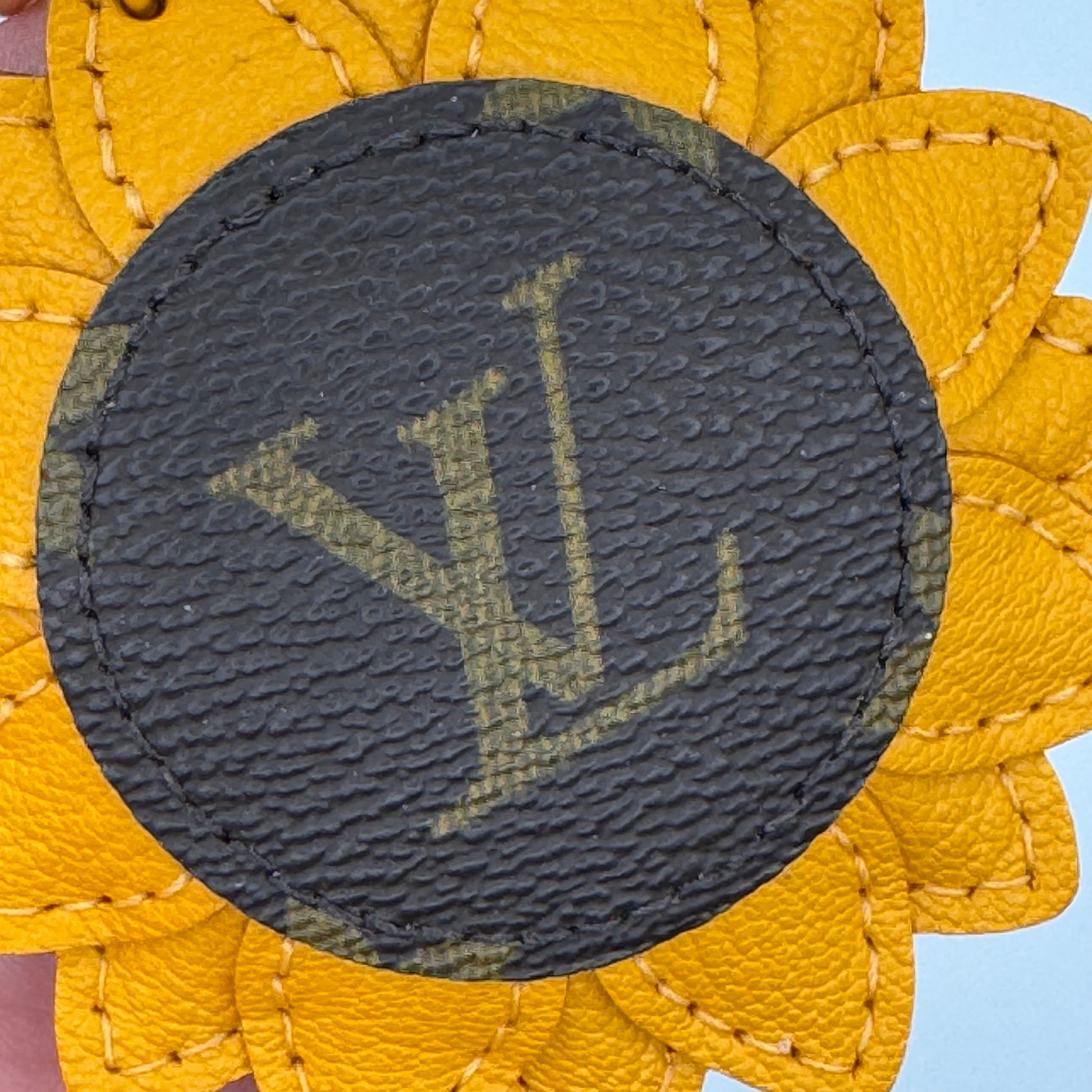 Crafted from authentic repurposed luxury leather, this charm features a cheerful yellow petal design surrounding a rich brown monogram center ā a perfect mix of sunshine and sophistication.